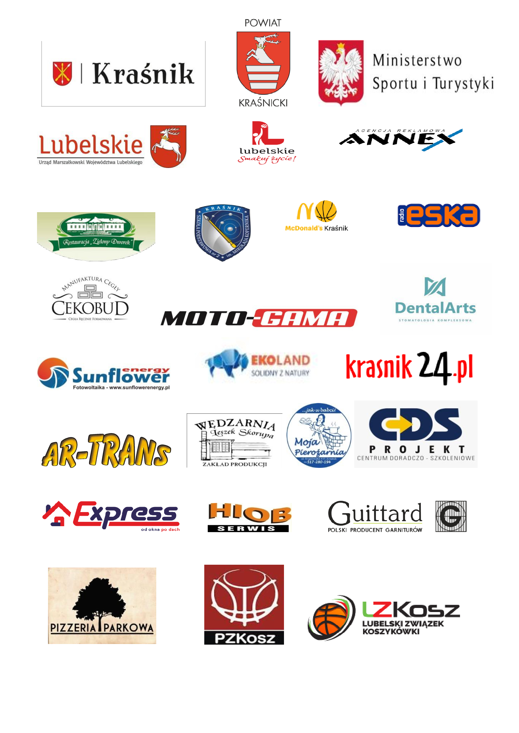 i Zarządu Klubu dziękuje za pomoc w organizacji Dyrektorowi ZPO nr 2 w Kraśniku Monice Hatłas, Burmistrzowi Miasta Kraśnik Krzysztofowi Staruchowi za wsparcie Turnieju. Posłance na Sejm RP Annie Baluch i Posłowi na Sejm RP Kazimierzowi Chomie za ufundowanie pucharów, statuetek i medali oraz PZKosz i LZKosz za ufundowanie nagród rzeczowych, za ufundowanie voucherów- poczęstunku w McDonald’s Kraśnik właścicielowi panu Sebastianowi Kwass i panu Robertowi Bańce właścicielowi Pizzerii Parkowej za ufundowanie voucherów – poczęstunku. Dziękuje również sponsorom Klubu. CDS Projekt, Biuro Podatkowemu Mariusz Goliński, Expres Blachodachówka, Zielony Dworek Urząd Miasta Kraśnik, MOPS Kraśnik, Starostwo Powiatowe Kraśnik, PZKosz, LZKosz, Urząd Marszałkowski Województwa Lubelskiego, Ministerstwo Sportu i Turystyki , Moto-Gama, Sunflower Energy, Cekobud, Annex, Doradca Podatkowy Mariusz Goliński, Express, ArTrans, Restauracja Zielony Dworek, Zakład Produkcji Wędlin Tradycyjnych- Leszek Skorupa, Moja Pierożarnia, Guittard – moda męska, DentalArts. Patronat medialny nad imprezą objęli kraśnik 24.pl i Radio ESKA Kraśnik.
